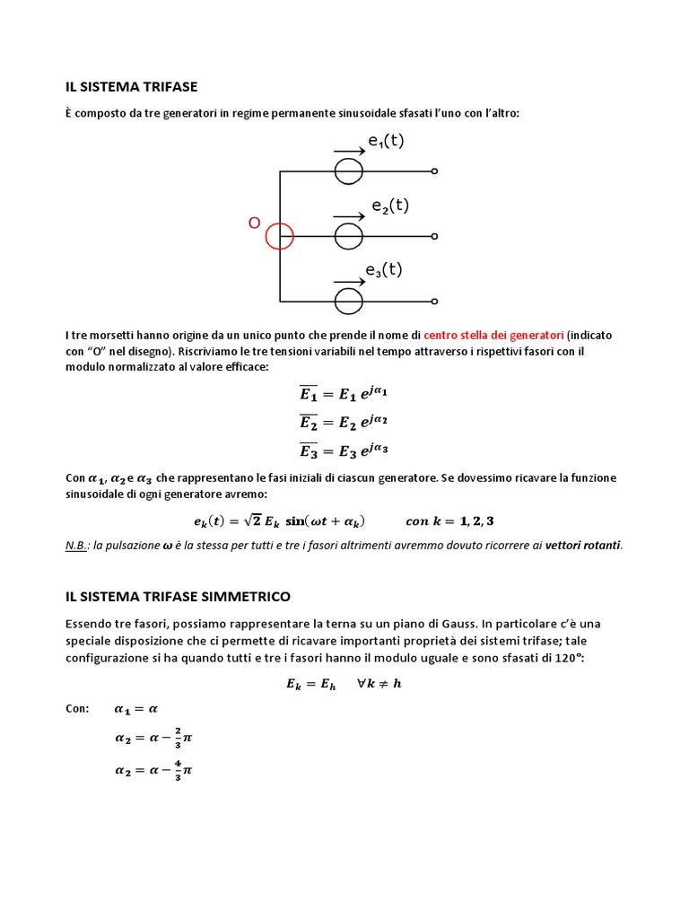 Per ora ci occuperemo solo di sistemi trifase simmetrici il cui modulo della tensione, costante per tutti e tre