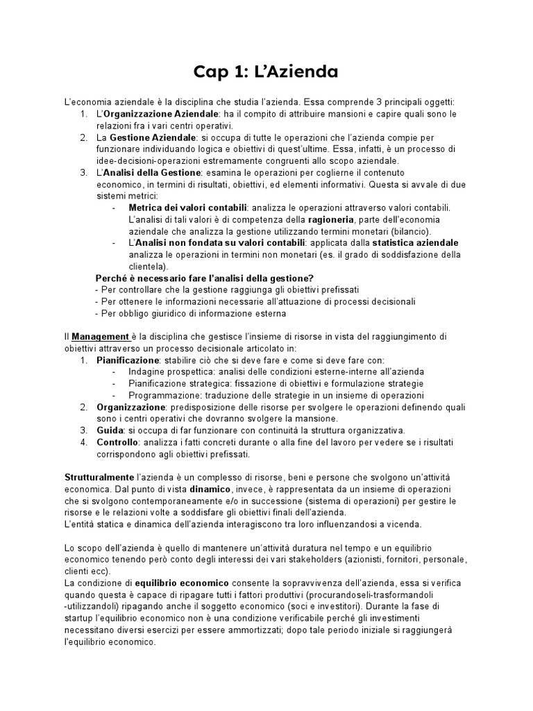 L’economia aziendale è la disciplina che studia l’azienda. Essa comprende 3 principali oggetti: