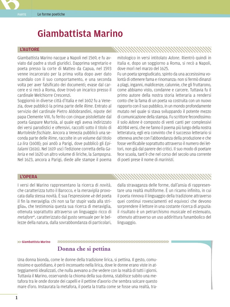 I versi del Marino rappresentano la ricerca di novità, dalla stravaganza delle forme, dall’ansia di rappresen-