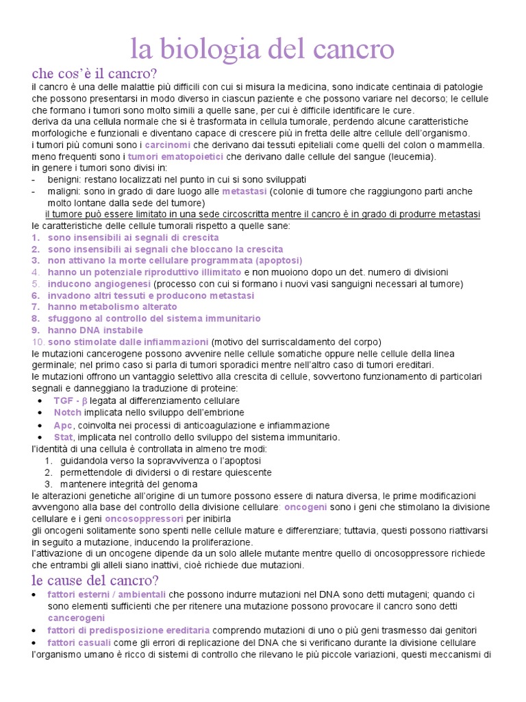 la biologia del cancro