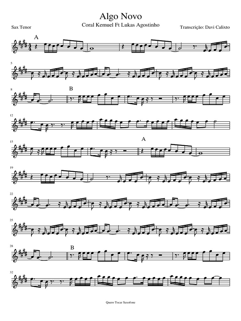 Sax Tenor Coral Kemuel Ft Lukas Agostinho Transcrição: Davi Calixto