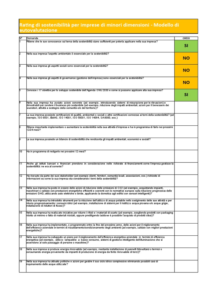 Rating di sostenibilità per imprese di minori dimensioni - Modello di