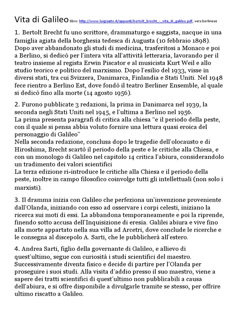 11. Brecht giudica che Galileo, con le sue ricerche, ebbe successo dal