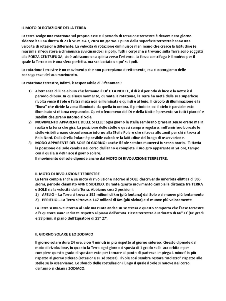IL MOTO DI ROTAZIONE DELLA TERRA