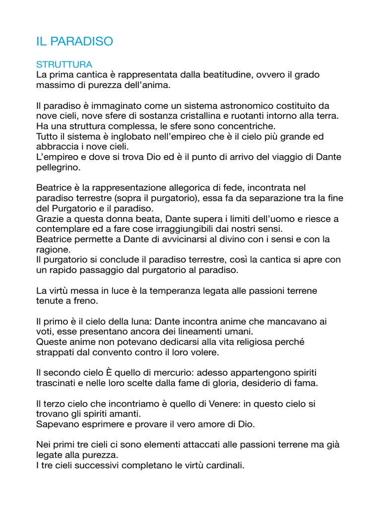 Il paradiso è costituito da parti descrittive, abbastanza omogenei grazie