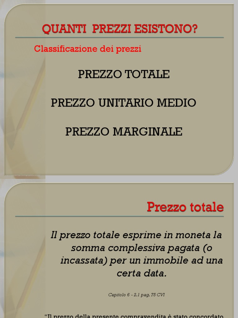 NB! Di solito, nella pratica estimativa, il valore conosciuto è quello