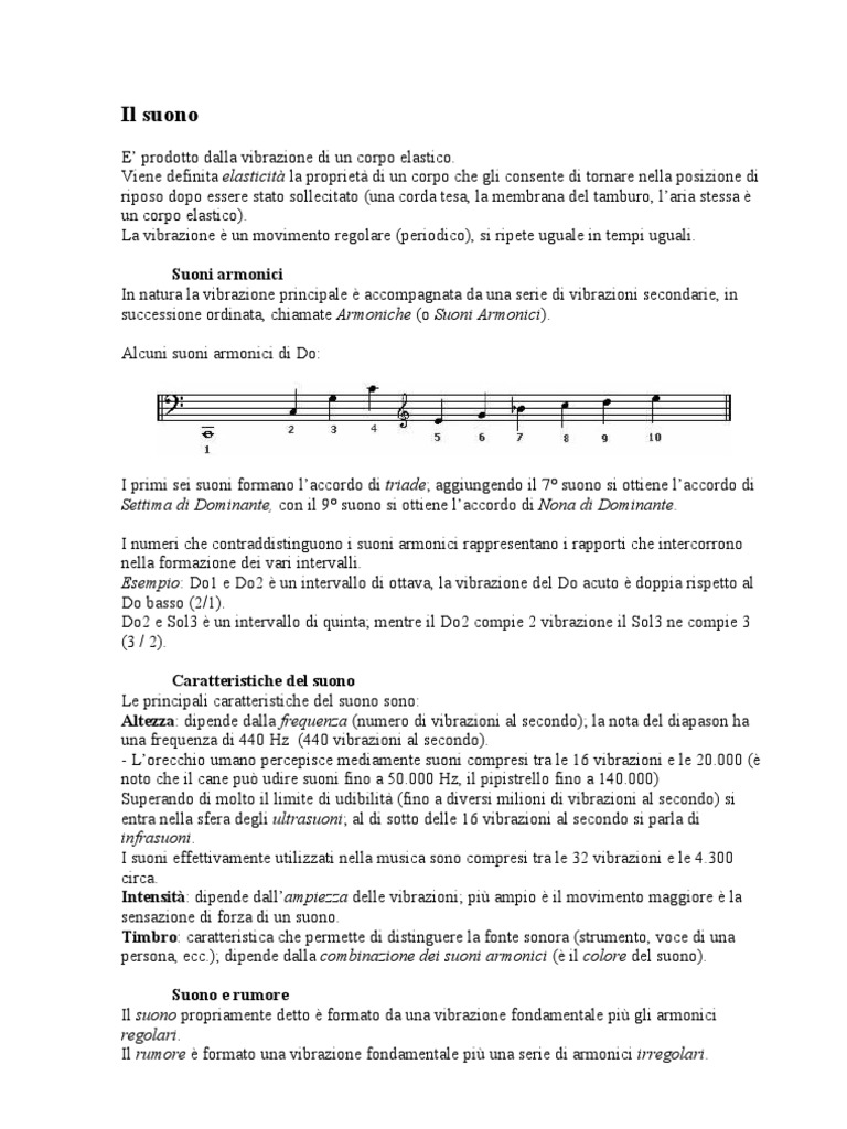 Il suono propriamente detto formato da una vibrazione fondamentale pi gli armonici
