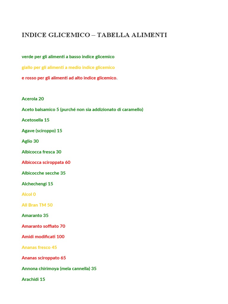 INDICE GLICEMICO – TABELLA ALIMENTI