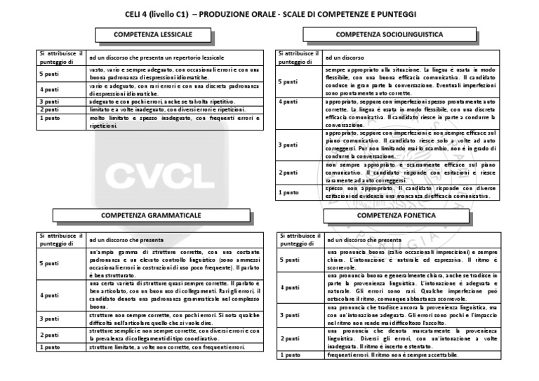 CELI 4 (livello C1) – PRODUZIONE ORALE - SCALE DI COMPETENZE E PUNTEGGI