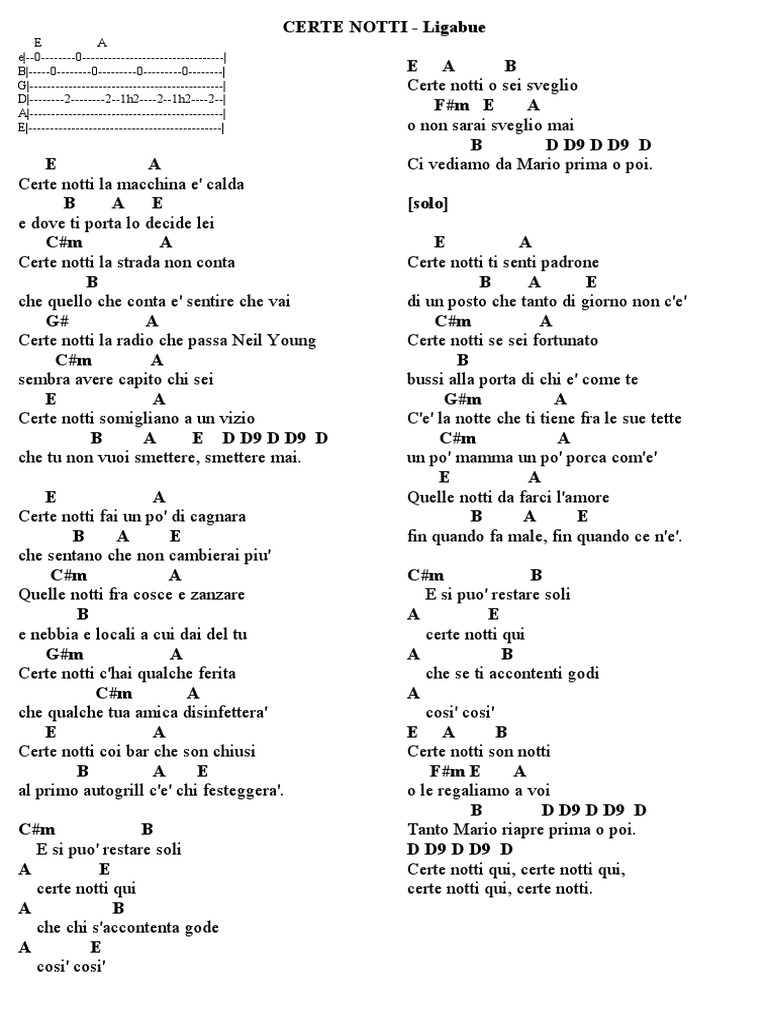 A E Certe notti qui, certe notti qui,