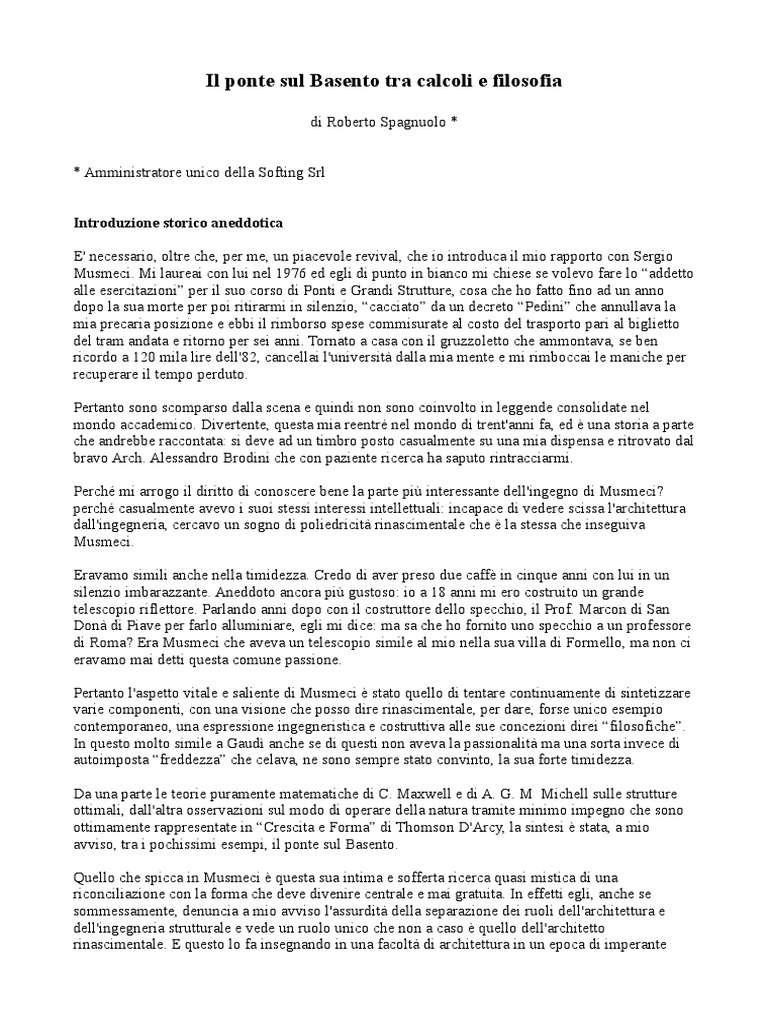 concetto di fondo – cosa per altro ben chiara a Musmeci e pertanto qui inessenziale - per cui ci