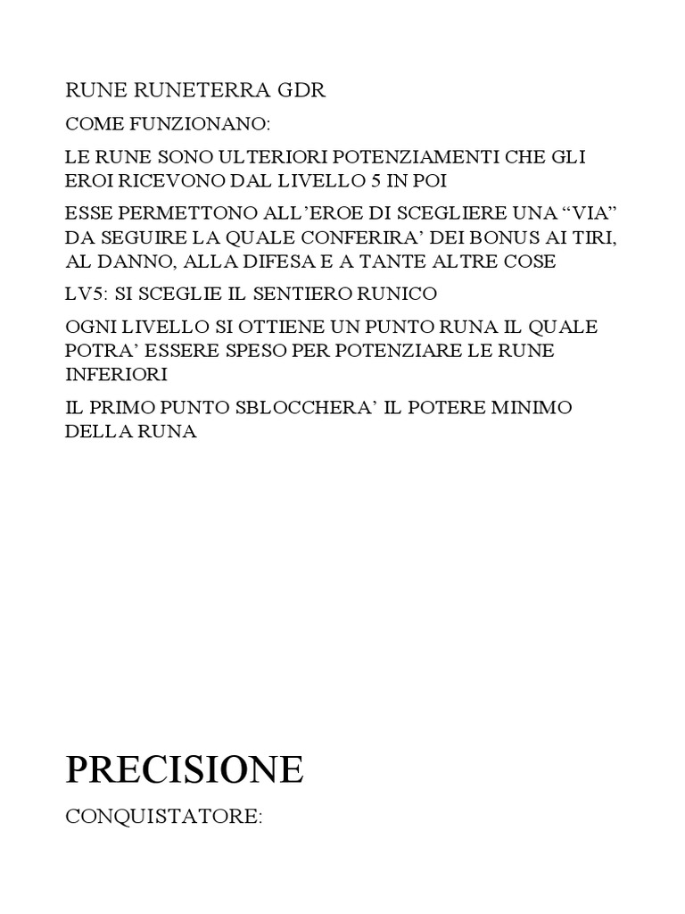 OGNI LIVELLO SI OTTIENE UN PUNTO RUNA IL QUALE