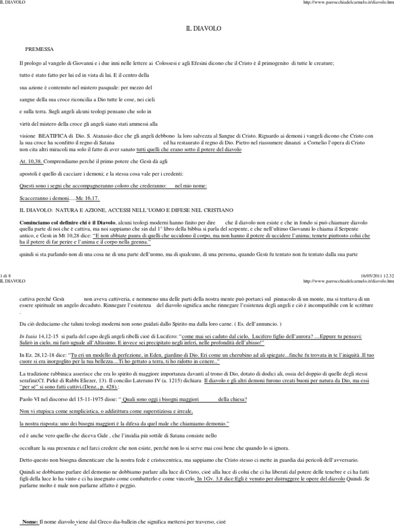 Cominciamo col definire chi è il Diavolo, alcuni teologi moderni hanno finito per dire che il diavolo non esiste e che in fondo si può chiamare diavolo