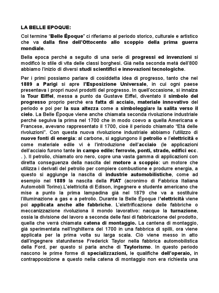cielo. La Belle Époque viene anche chiamata seconda rivoluzione industriale