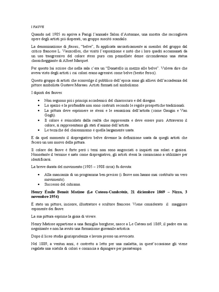 E da quel momento il dispregiativo belve divenne la definizione usata da quegli artisti che