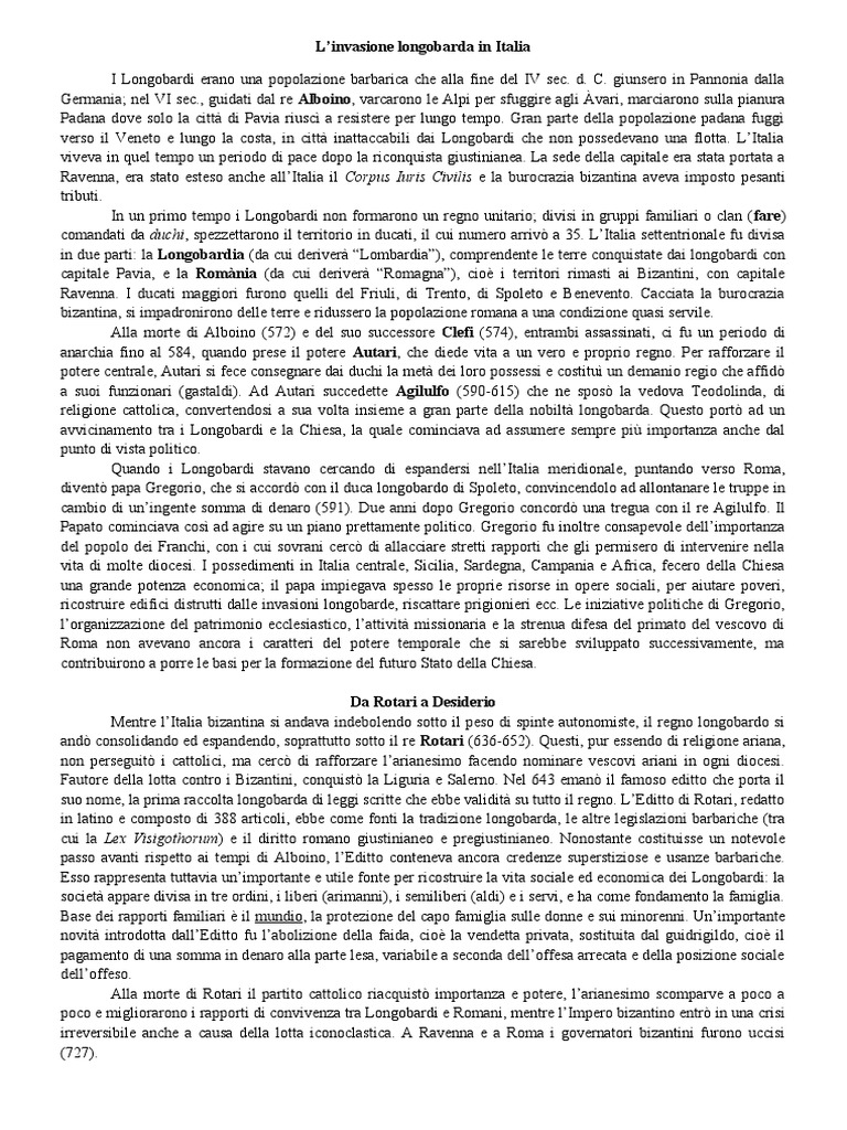 L’invasione longobarda in Italia
