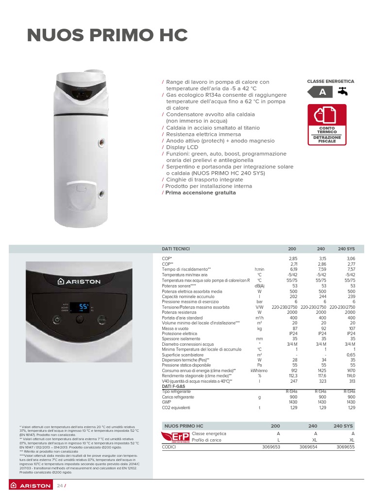 (EN 16147). Prodotto non canalizzato. Classe energetica A A A