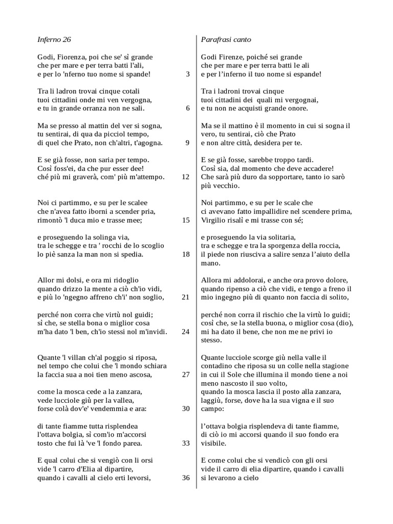 Inferno 26 Parafrasi canto