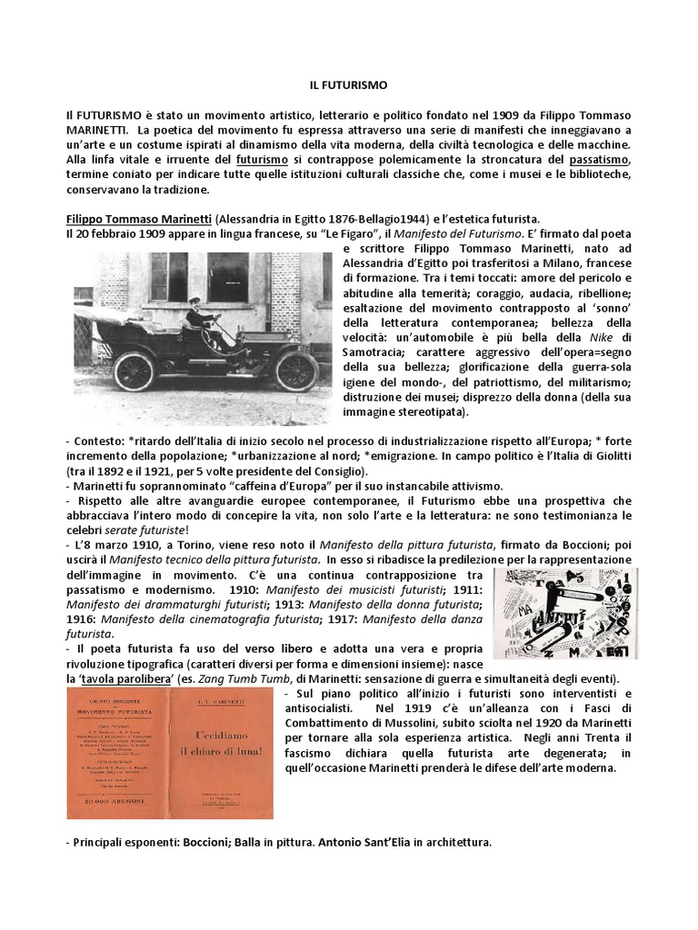 Il FUTURISMO è stato un movimento artistico, letterario e politico fondato nel 1909 da Filippo Tommaso