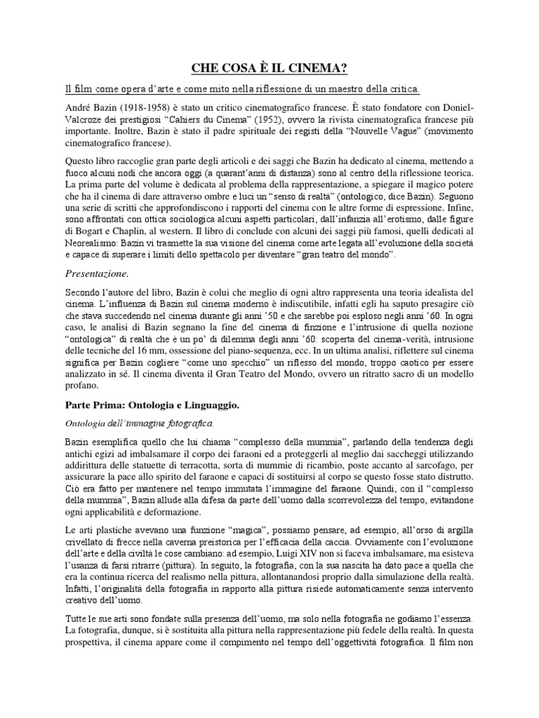 cinema. L’influenza di Bazin sul cinema moderno è indiscutibile, infatti egli ha saputo presagire ciò