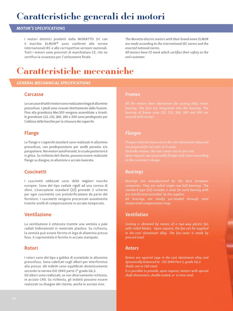 I motori elettrici prodotti dalla MORATTO Srl con The Moratto electric motors with their brand name ELMOR