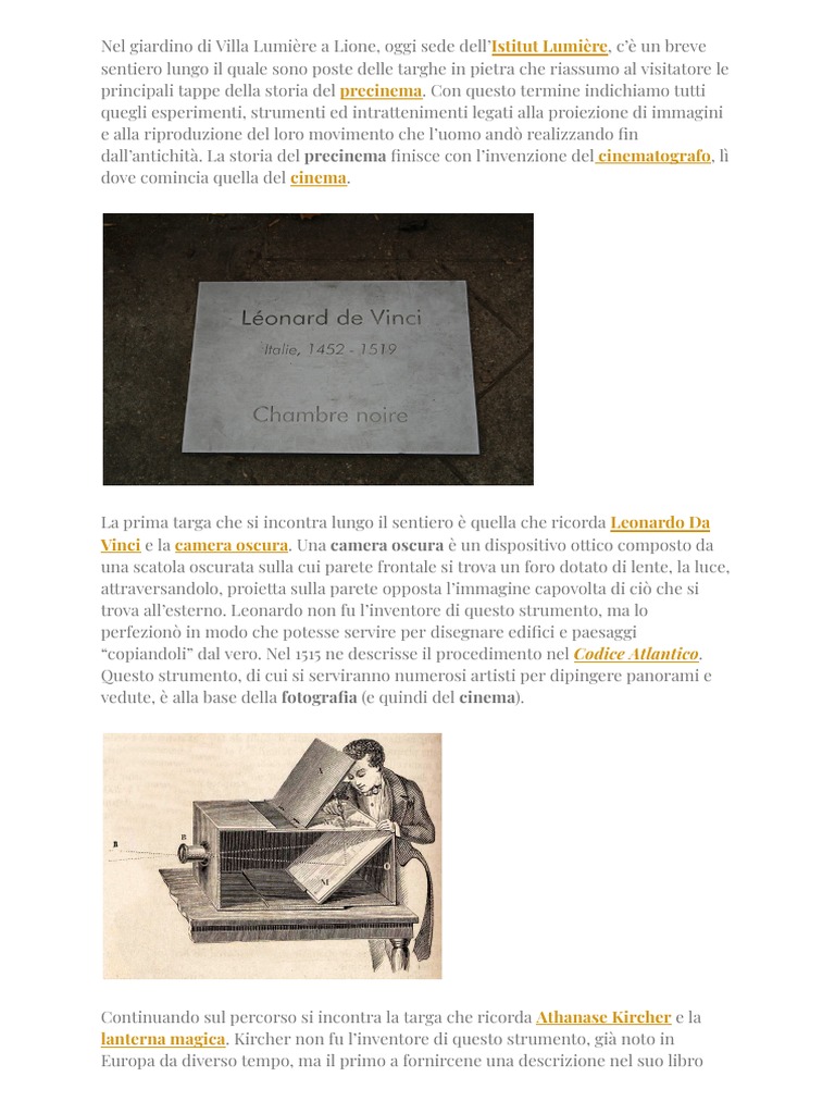 principali tappe della storia del precinema. Con questo termine indichiamo tutti