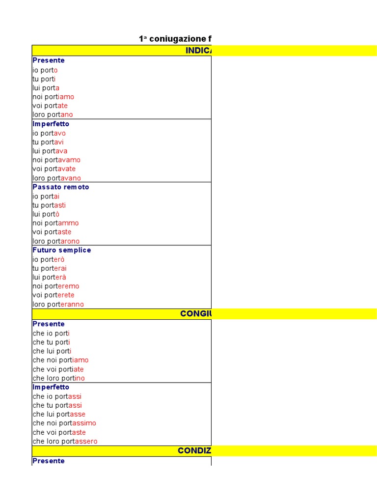 1a coniugazione forma attiva (-are)