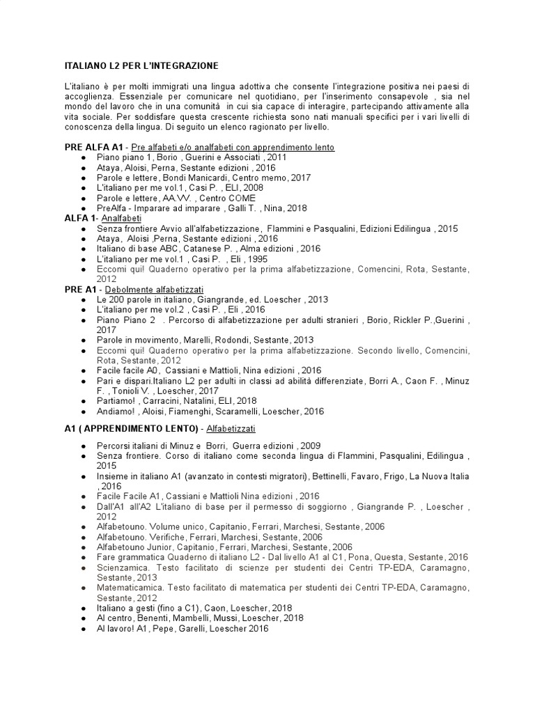 conoscenza della lingua. Di seguito un elenco ragionato per livello.