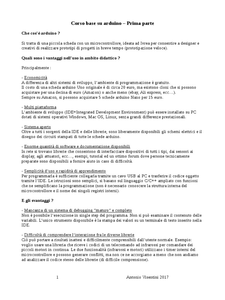 indirizzo). Affronto lo studio dettagliato dei micro AVR, introduco la programmazione vera in C, per gradi,