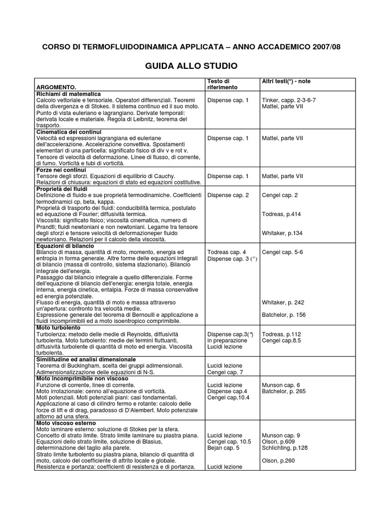 • Y.A. Cengel, J.M. Cimbala, Meccanica dei Fluidi, McGraw-Hill, 2007, ISBN 978-88 386 6384-0, capp. 1-11.
