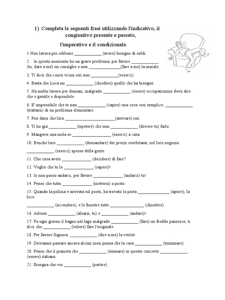3) Completa le seguenti frasi utilizzando l'indicativo o il congiuntivo