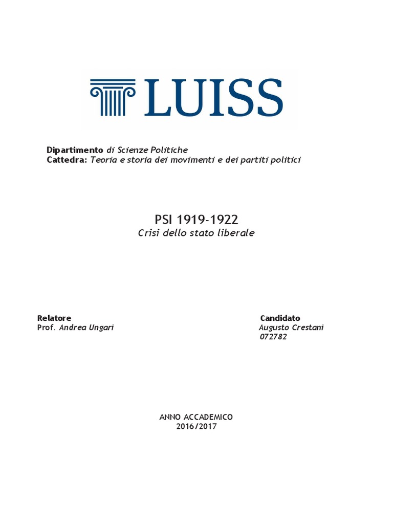 The crisis of the liberal state and the history of the PSI are intertwined in the years from the end