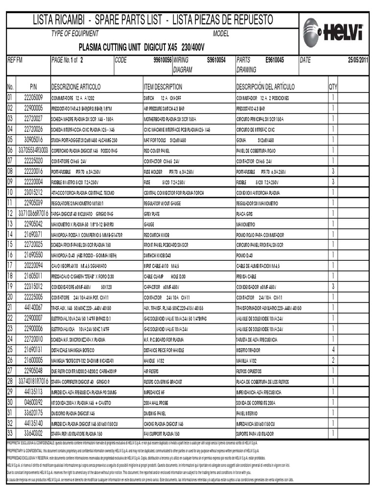 PROPRIETARY & CONFIDENTIAL: this document contains proprietary and confidential information owned by HELVI S.p.A. and may not be duplicated, communicated to other parties or used for any purpose without express written permission of HELVI S.p.A.