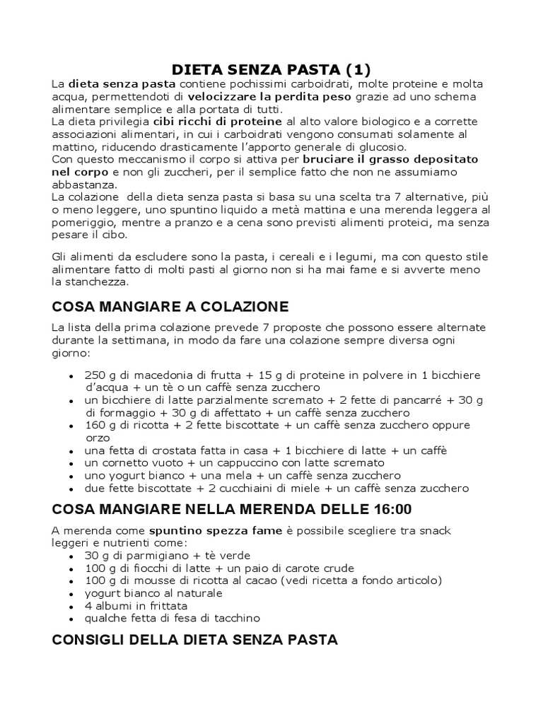 alla Dieta Parker o Dieta Plank). I carboidrati, specialmente quelli assunti
