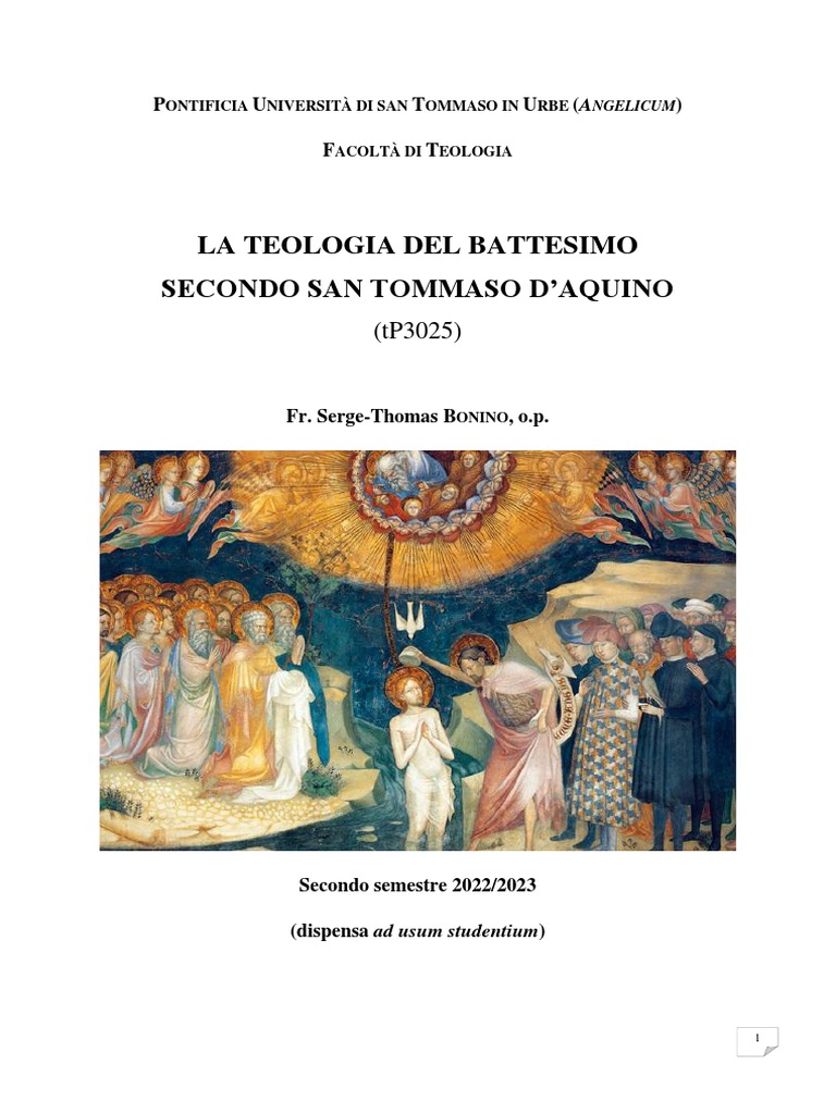 Il testo di riferimento sarà le q. 66 a 71 della IIIa pars della Summa theologiae. Scritte