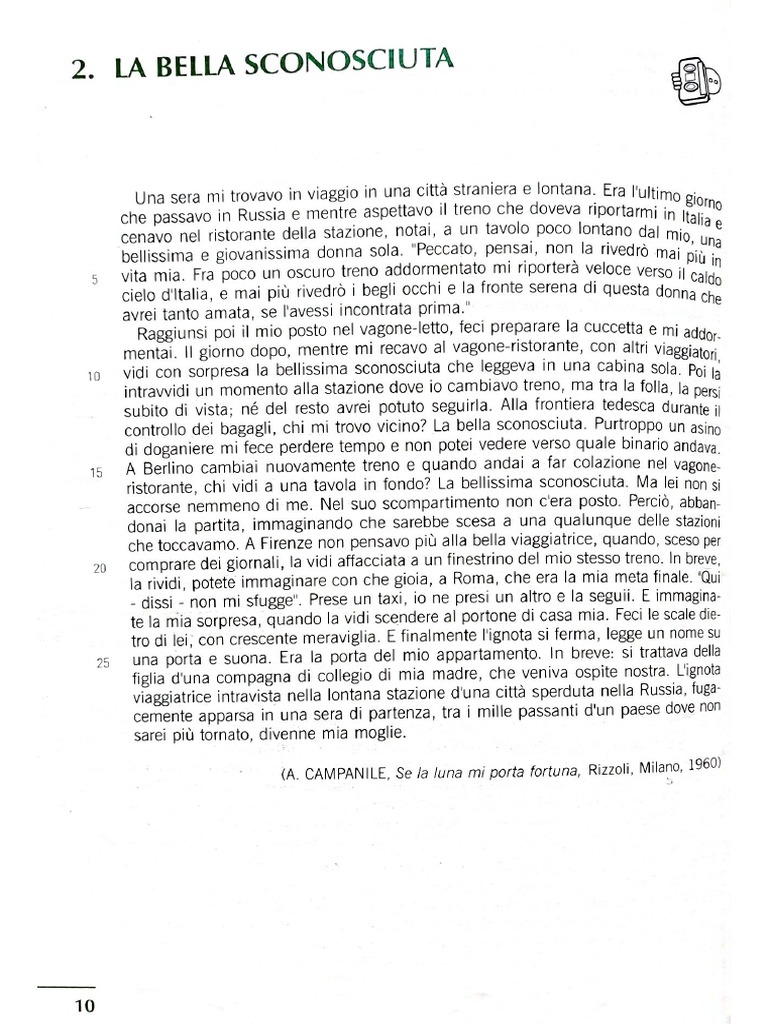 3. Lo scrittore cosi presenta il primo incontro con la ‘bella sconosciuta'": ‘notai, ad un tavo-