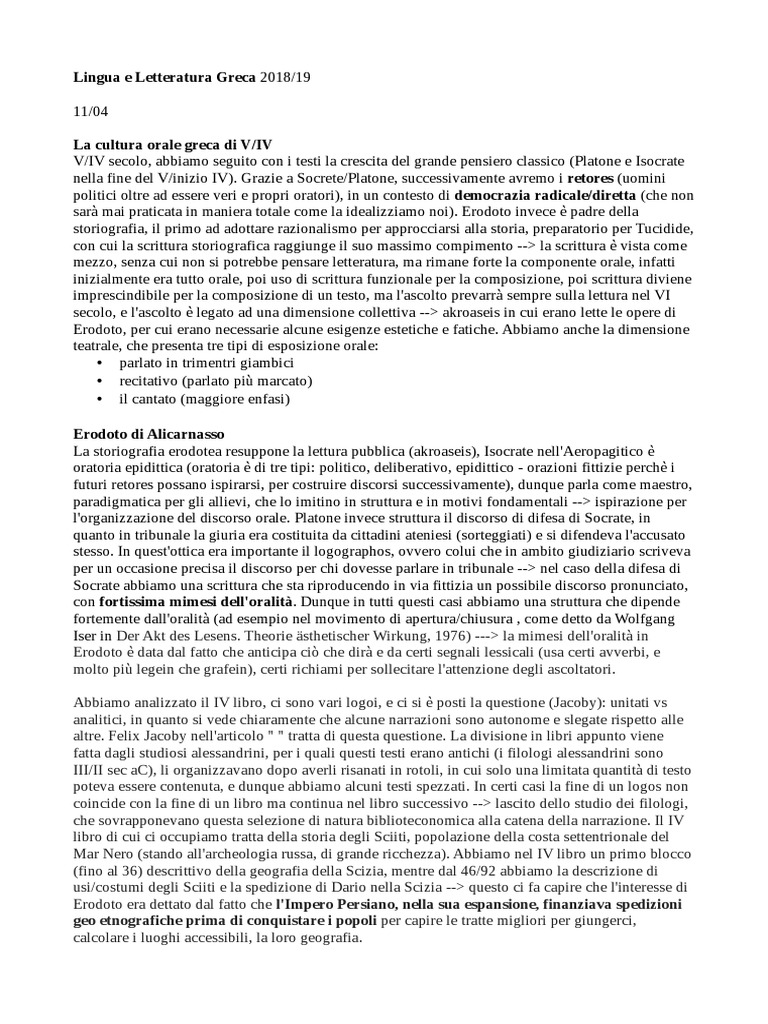 da cui possiamo attingere: La letteratura greca: tempi e luoghi, occasioni e forme di Beltrametti,