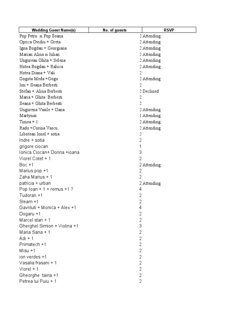 of guests RSVP