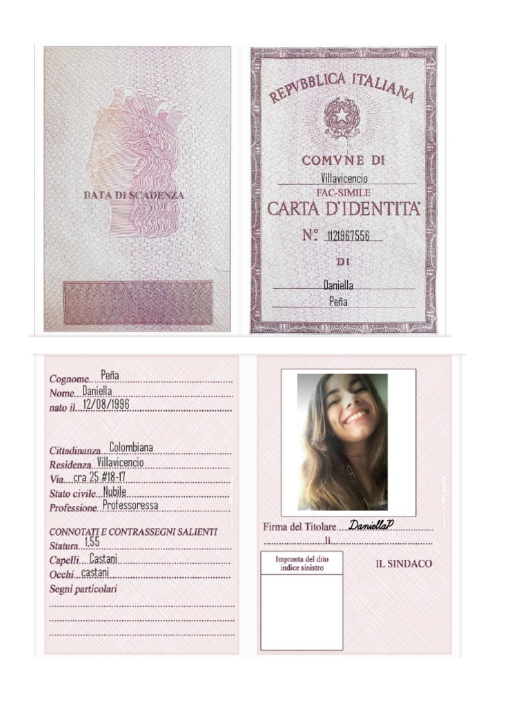 Ciao, Io me chiamo Daniella Peña, Io ho ventisei anni, Io sono colombiana, Io abito a