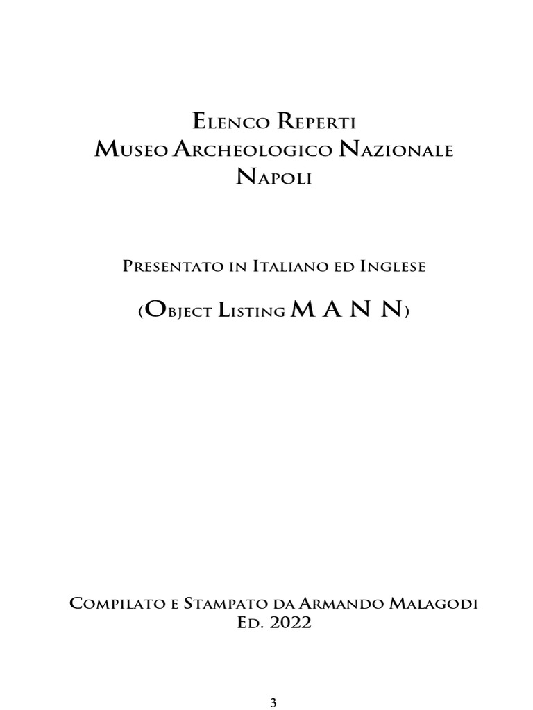 era. The inventory is composed mainly of objects recovered in Italy.
