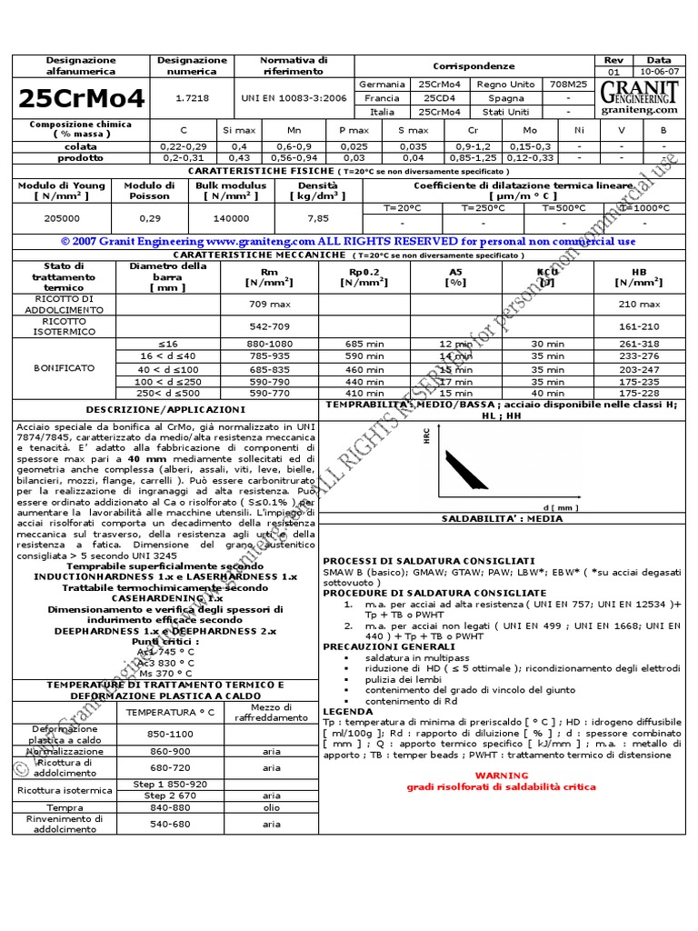 Temperature minime di preriscaldo : 25CrMo4 UNI EN 10083-3 : 2006