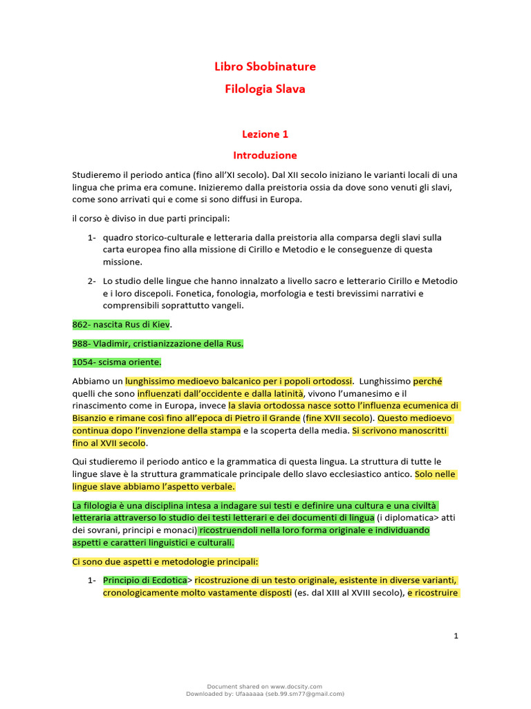 formale e strutturale dei testi. Tutte le lingue slave moderne partono da una stessa lingua