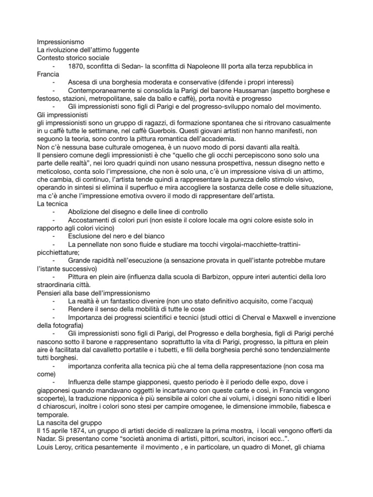 ⁃ Gli impressionisti sono gli di Parigi, del Progresso e della borghesia, gli di Parigi perché