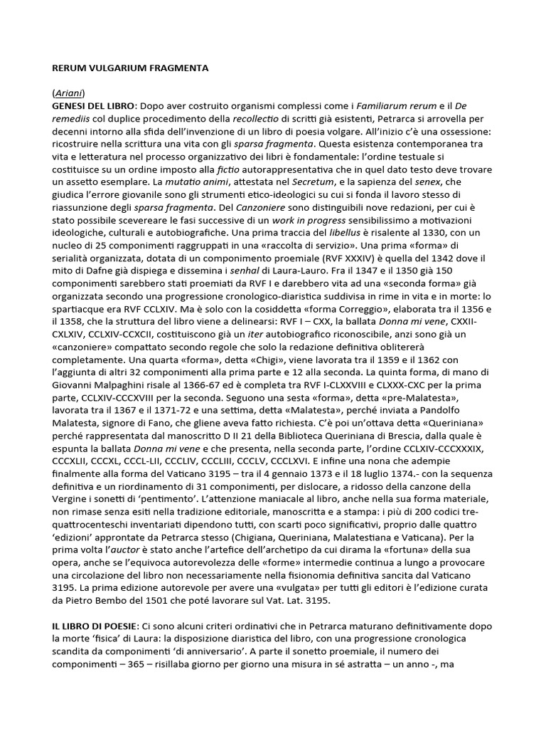 riassunzione degli sparsa fragmenta. Del Canzoniere sono distinguibili nove redazioni, per cui è