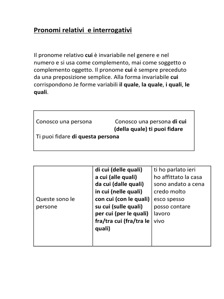 quale, dei quali, delle quali.
