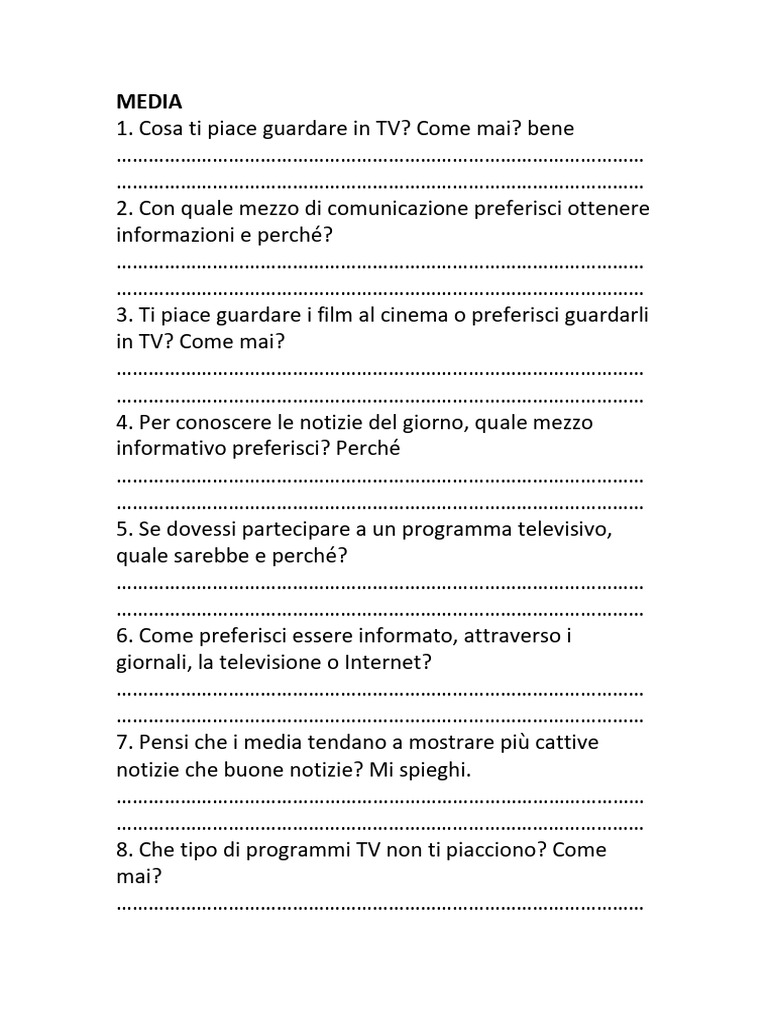 1. Cosa ti piace guardare in TV? Come mai? bene