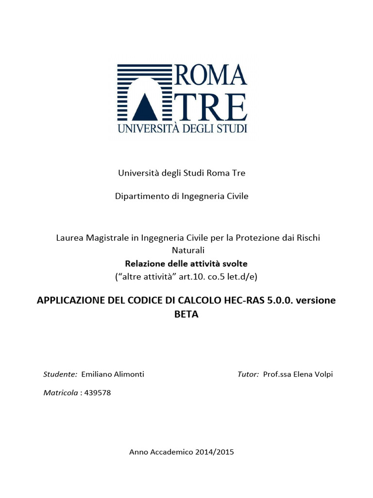 comportamento del software HEC-RAS 5.0.0. è il primo passaggio del lavoro alla base della tesi di Laurea