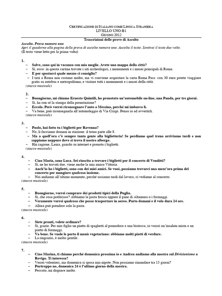 Trascrizioni delle prove di Ascolto