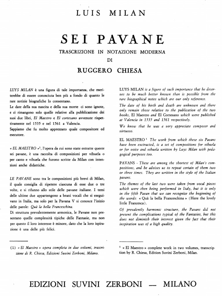 LE PAVANE sono tra le composizioni pits brevi di Milan,