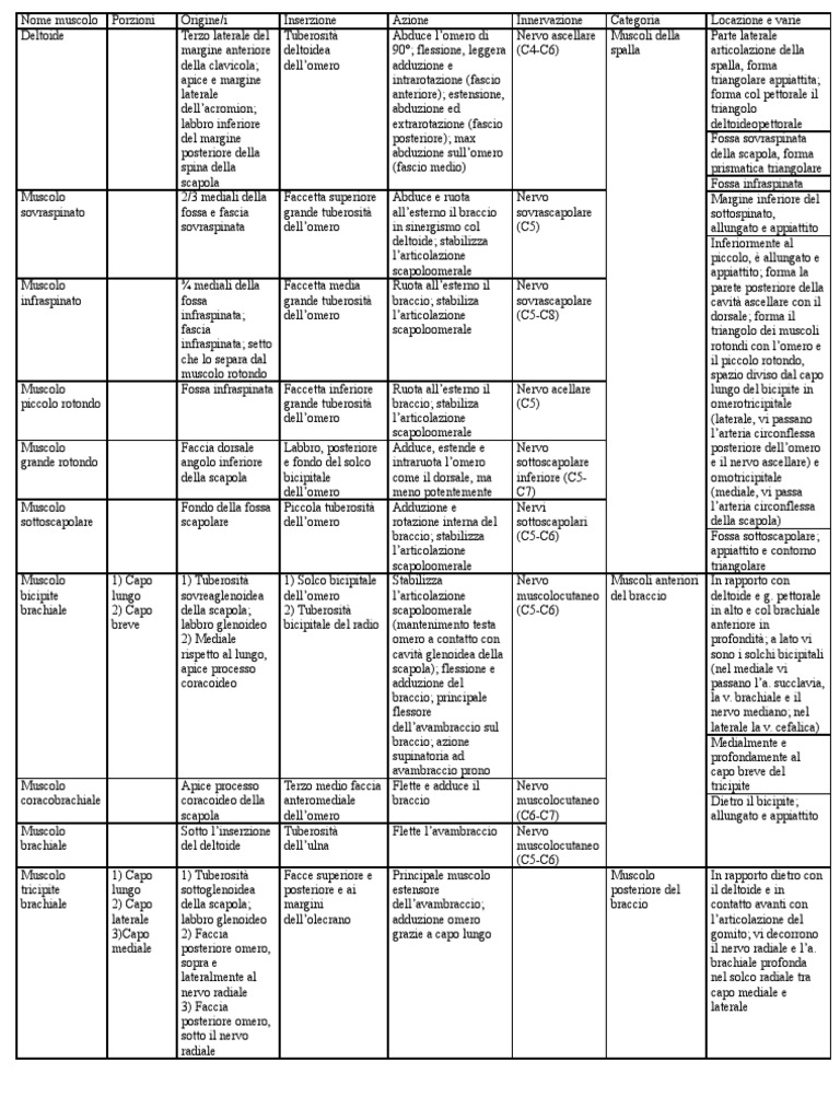 Muscolo 1) Capo 1) Tuberosità 1) Solco bicipitale Stabilizza Nervo Muscoli anteriori In rapporto con